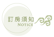 預約訂房:為保障權益,請於訂房後3日內匯入訂金,訂金為房價價五成(春節則為全額房價),並來電告知(最終訂房結果以匯款入帳為主)。 |